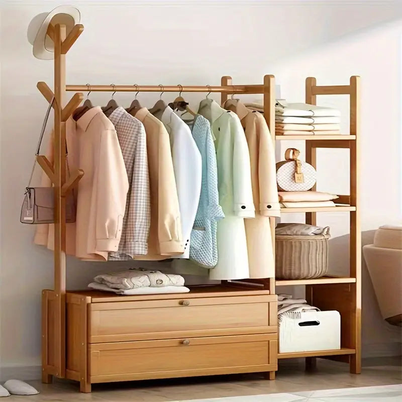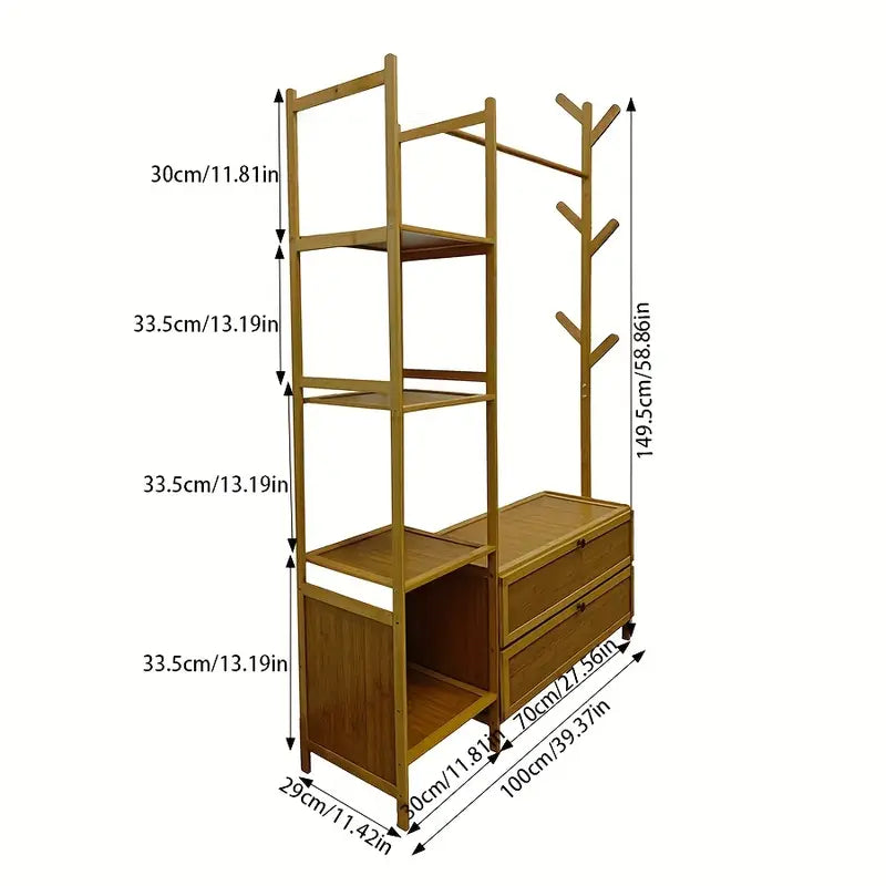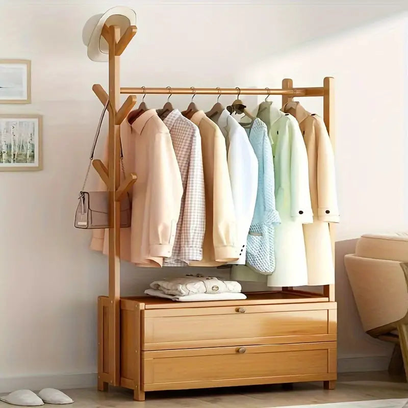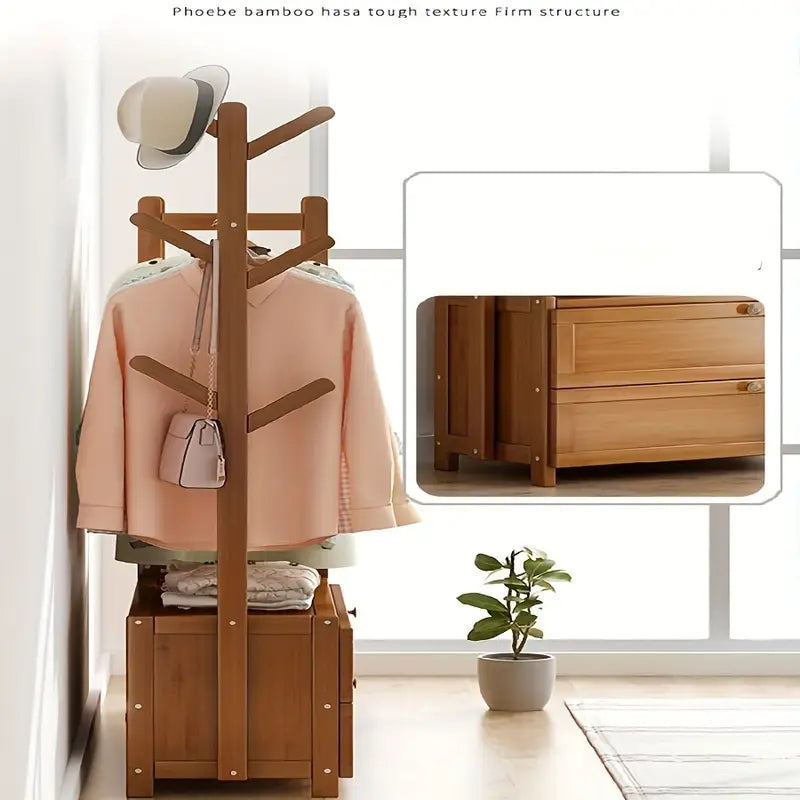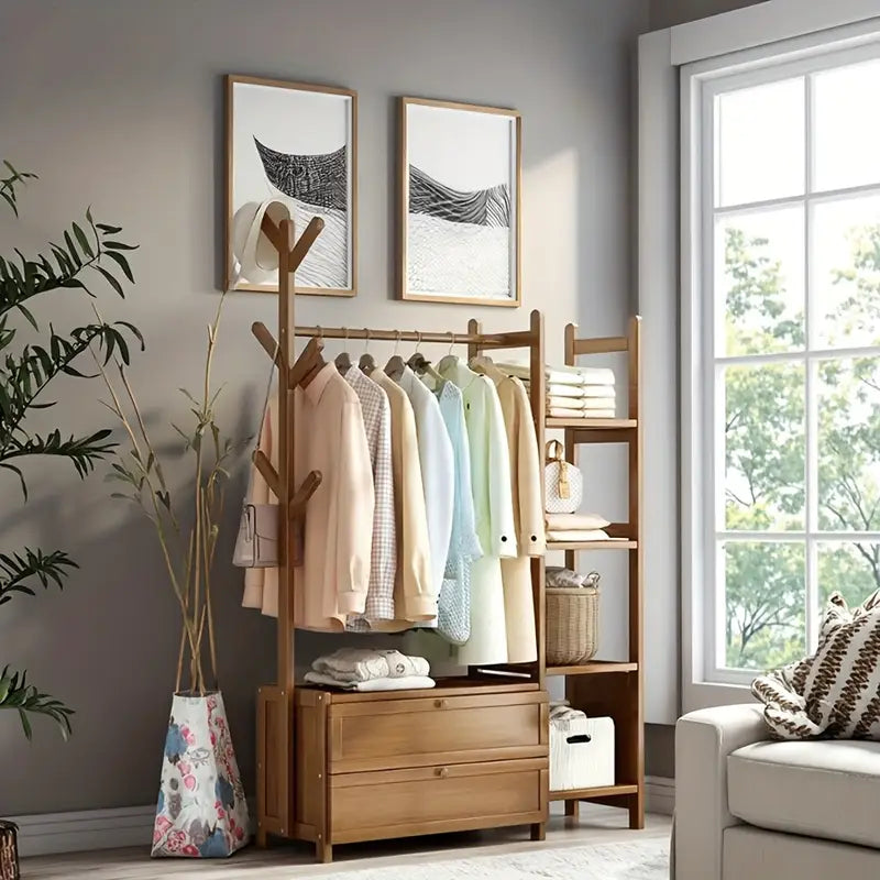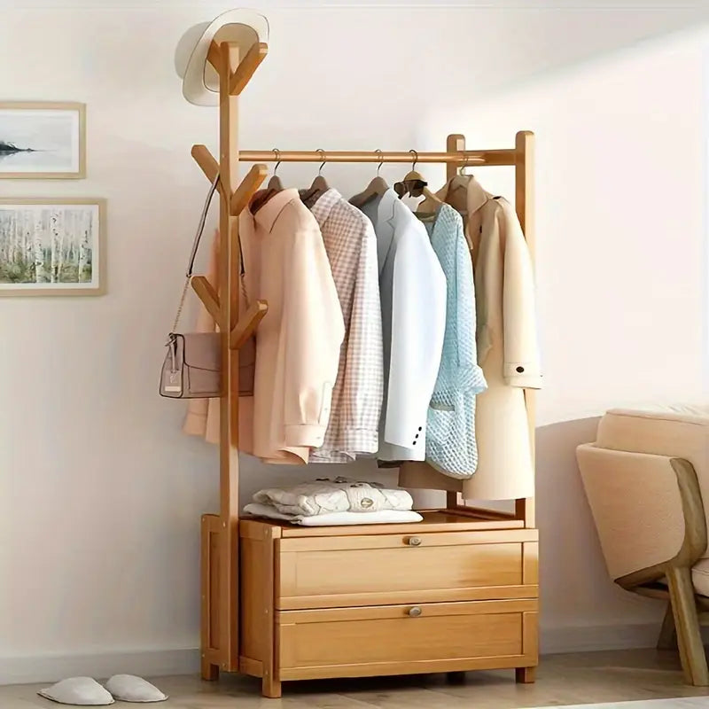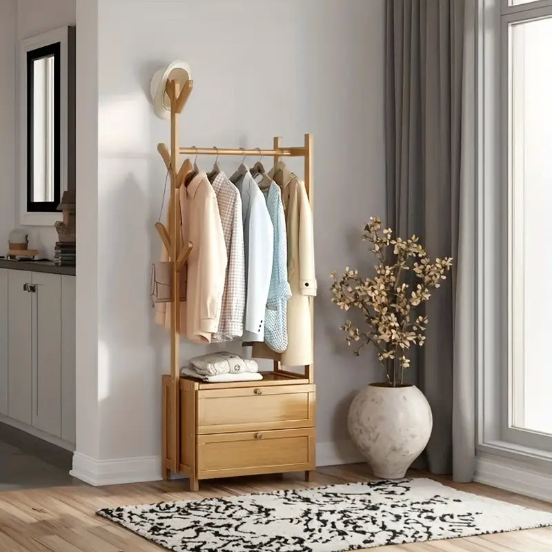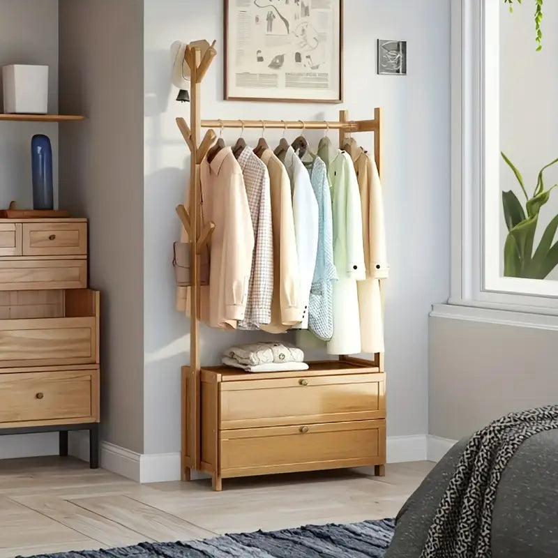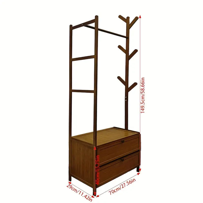 ™CoatHaven | מדף מעילים מעץ רב-תכליתי – כולל אחסון לנעליים