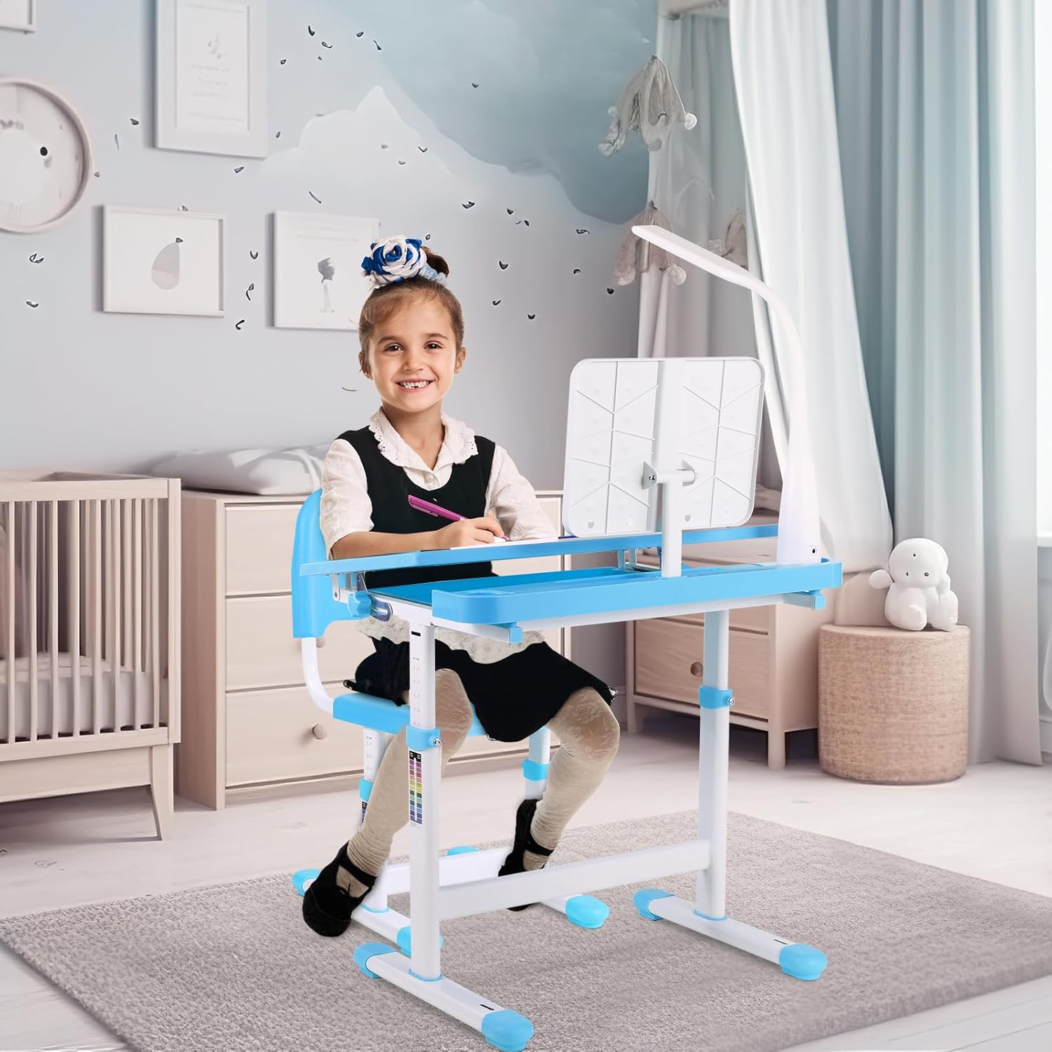 מה באריזה: ™1x Flexidy שולחן לימוד פונקציונלי, כיסא, מנורה, מדריך הרכבה.