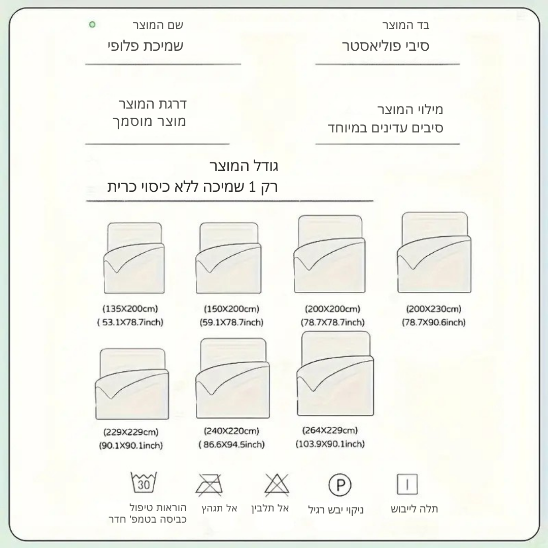 מידות: זמינה במידות שונות שמתאימות למיטה או לספה שלך.