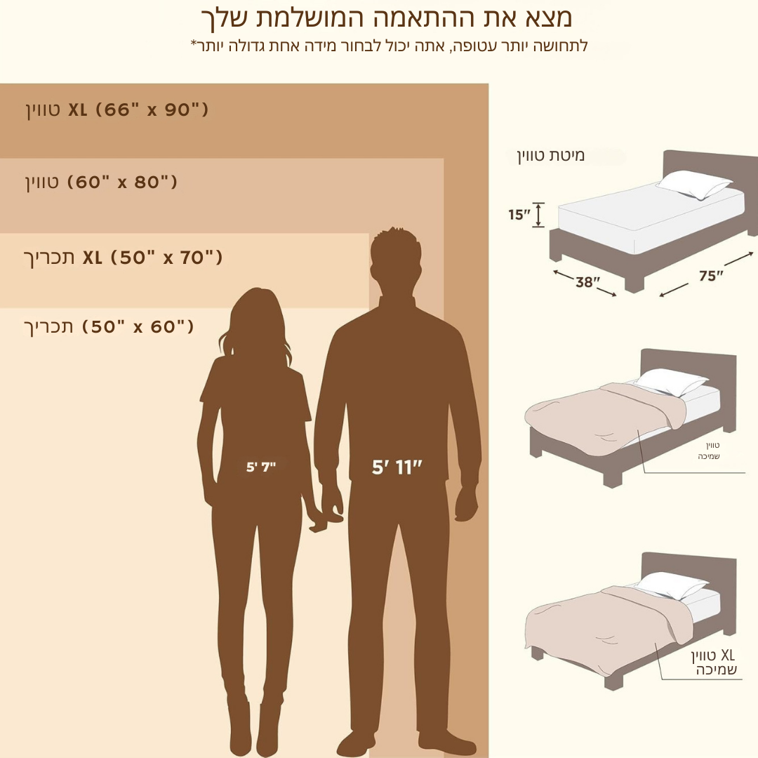 מידות: זמינה במידות שונות שמתאימות למיטה או לספה שלך.