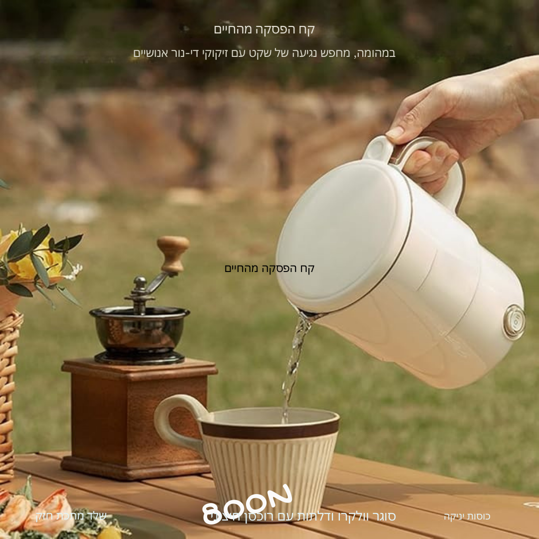 קומקום קל ונייד, מושלם לשימוש בדרכים