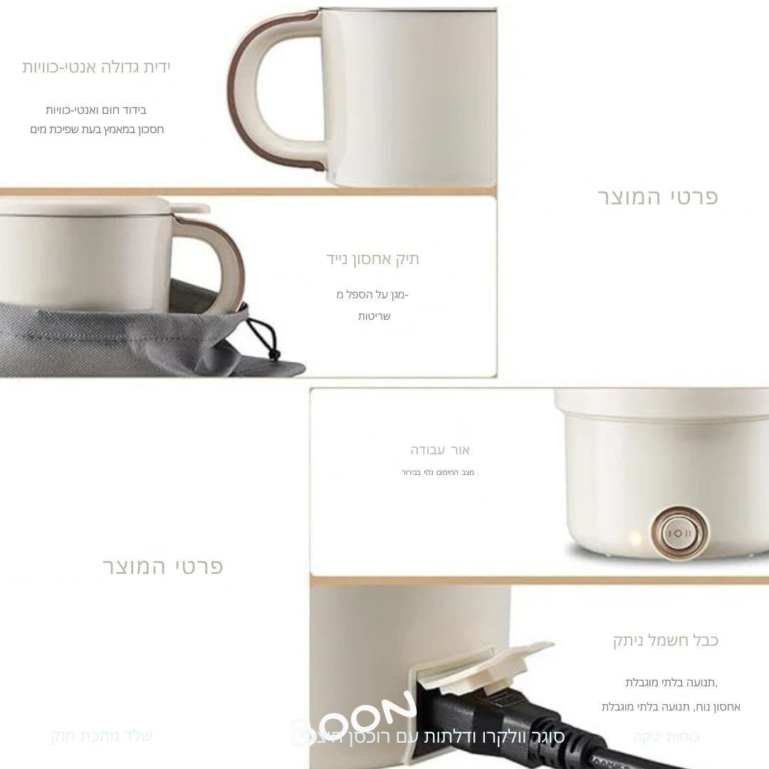 תכונות מיוחדות: כיבוי אוטומטי, הגנה משימוש במים רותחים